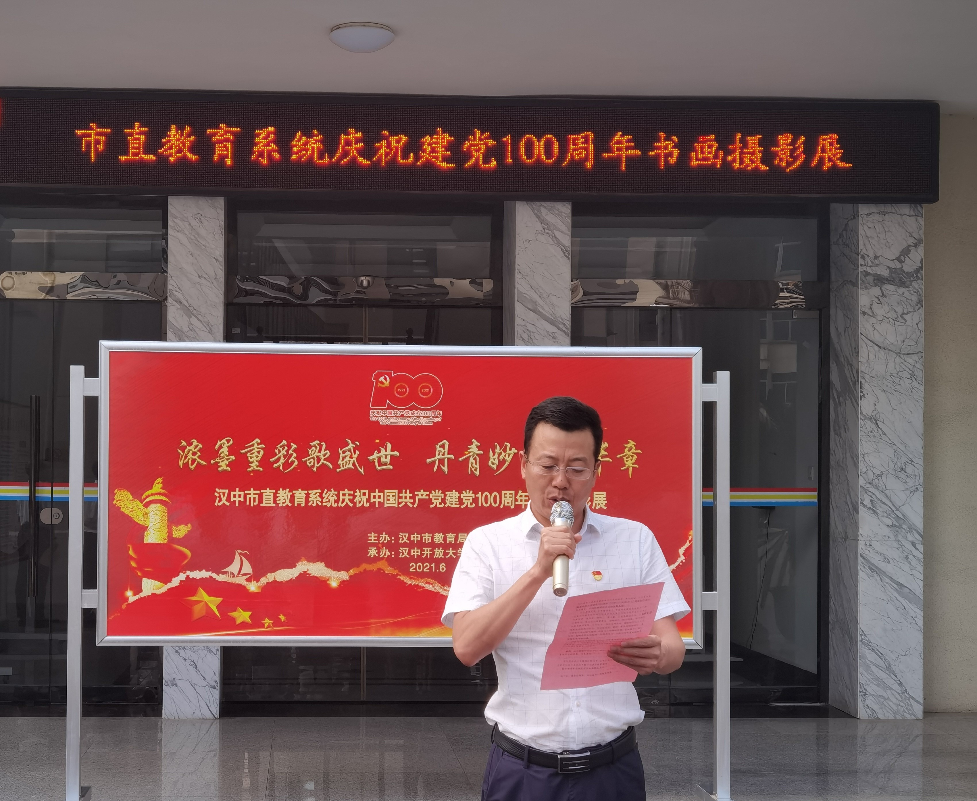 6月30日,中共汉中市教育局直属机关委员会举办“浓墨重彩歌盛世,丹青妙笔颂华章”市直教育系统庆祝建党100周年书画摄影展启动仪式。